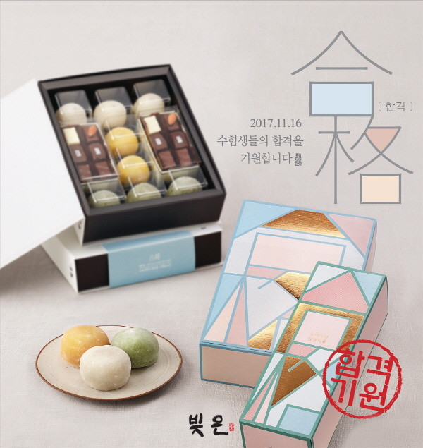 ‘빚은 수능 합격기원 세트’는 합격(合格) 글자를 활용한 패키지 선물세트로 가격대는 1만원 이하부터 3만 원대로 구성됐다.