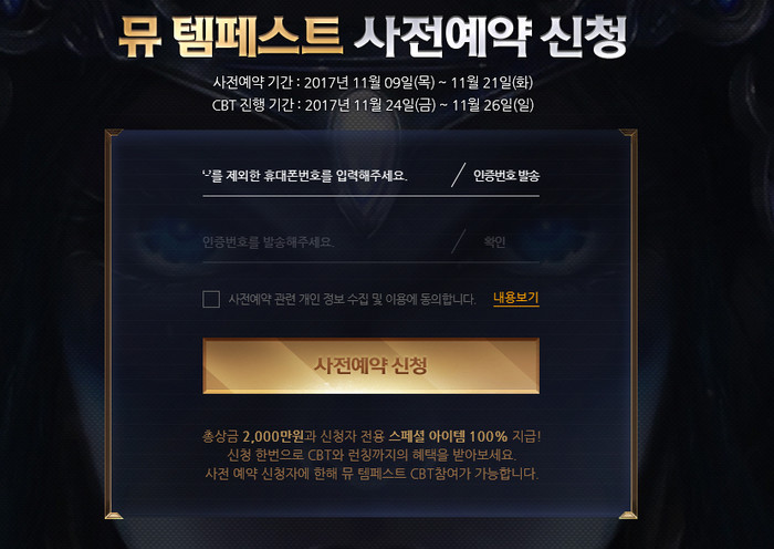 | ▲ 뮤 템페스트 사전예약 화면 | ||
