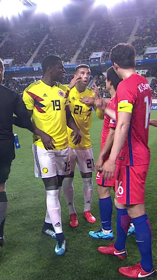 한국-콜롬비아 인종차별 사건은 후반 18분 기성용과 하메스 로드리게스(26·바이에른 뮌헨)가 물리적인 충돌이 동반된 격한 신경전을 벌인 것이 발단이었다.