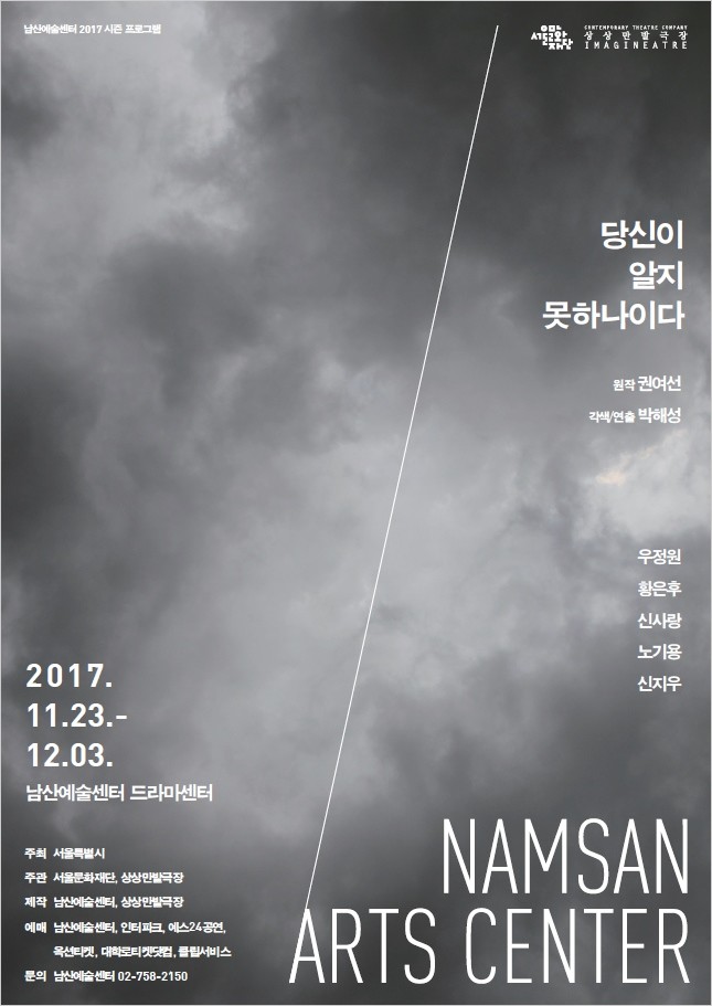 <당신이 알지 못하나이다>는 남산예술센터, 인터파크, 대학로티켓닷컴, 클립서비스, 예스24공연, 옥션·지마켓 티켓 예매사이트를 통해 예매가 가능하다. 전석 3만원, 청소년 및 대학생은 1만8천원, 2018년 대학수학능력시험 수험표 지참 시 1만원이다.