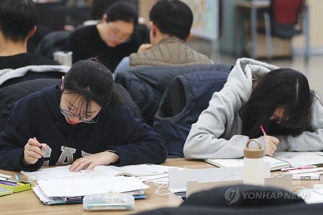 대학수학능력시험 연기 발표 다음날인 16일 오전 강원 춘천시립도서관에서 고3 수험생들이 공부하고 있다.
