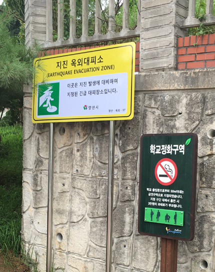 특히, 지진대피소 표지판은 야간에도 쉽게 식별 할 수 있는 반사가 잘 되는 야광재질을 사용하였다.
