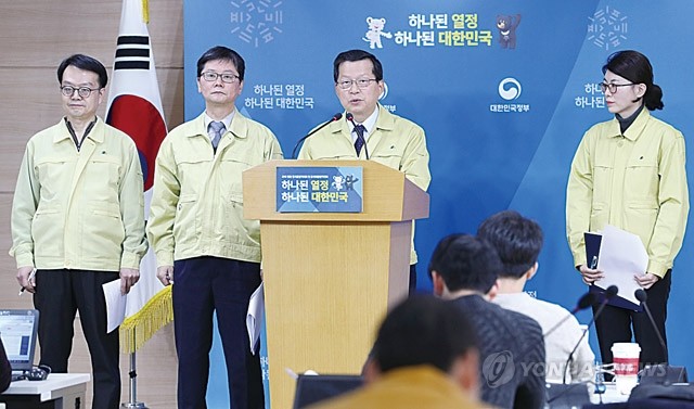 심보균 행정안전부 차관과 손병석 국토교통부 차관(왼쪽 두 번째)이 19일 오후 정부 서울청사 통합브리핑룸에서 포항지진과 관련한 브리핑을 하고 있다.
