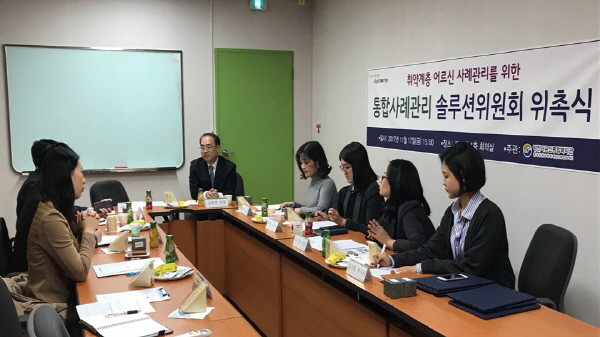 서울 양천어르신종합복지관은 최근 양천구 취약계층 노인의 전문적인 사례관리 및 보호를 위해 ‘2017년 취약계층 어르신의 사례관리를 위한 솔루션위원회’ 위촉식을 가졌다. 사진은 참여자들이 이야기를 나누는 모습.(사진제공=양천어르신종합복지관)