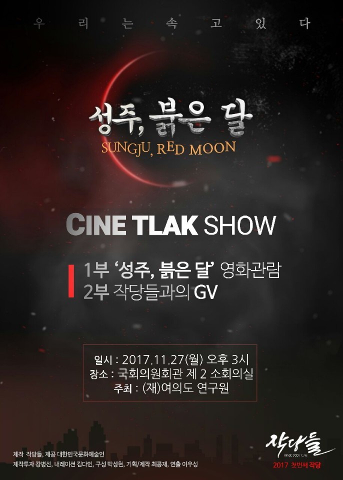 이날 행사에서는 영화 '성주 붉은 달'이 상영되며, 이후 관객과의 대화 자리가 마련된다.