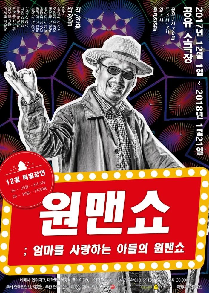 지난 2인극 페스티벌에서 초연된 작품이기도 한 <원맨쇼>는 치매에 걸린 엄마를 위해 연극을 하는 아들의 이야기를 다루고 있다. 이번 공연은 총 7팀이 짝을 이뤄 각양각색의 무대를 선보일 예정이다.