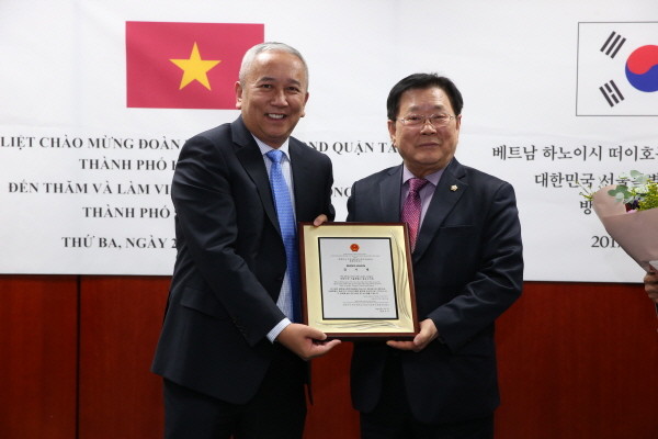 종로구의회를 대표해 감사패를 수상한 김복동 의장은 “한국과 베트남이 전쟁의 폐허 속에서 고통을 딛고 일어나 인내와 성실로써 경제발전의 기적을 이룬 공통점이 있다”고 강조하고, “떠이호구의회는 물론 베트남과 그동안 쌓아온 친분을 바탕으로 상호존중하고 양국의 발전을 위해 함께 노력해 나갈 것을 당부 드린다”고 말했다.