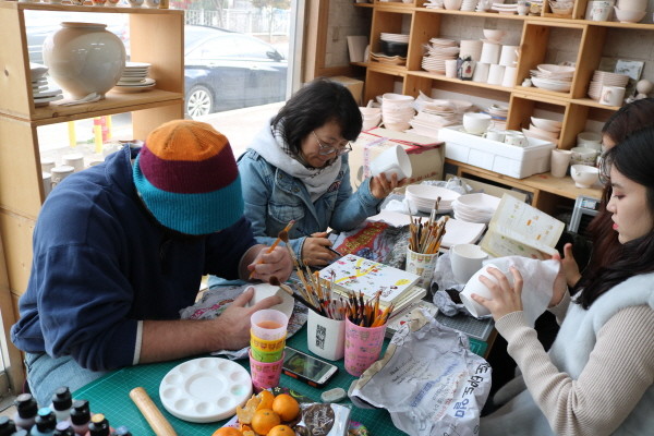 전남장흥교육지원청은 최근 지역내 TaLK(Teach and Learn in Korea) 원어민 장학생과 협력교사 14명을 대상으로 정남진 토요시장과 달항아리 공방에서 ‘2017. TaLK 원어민 장학생 문화체험’을 실시했다. 사진은 참여자들이 공예체험을 하고 있는 모습.(사진제공=장흥교육지원청)