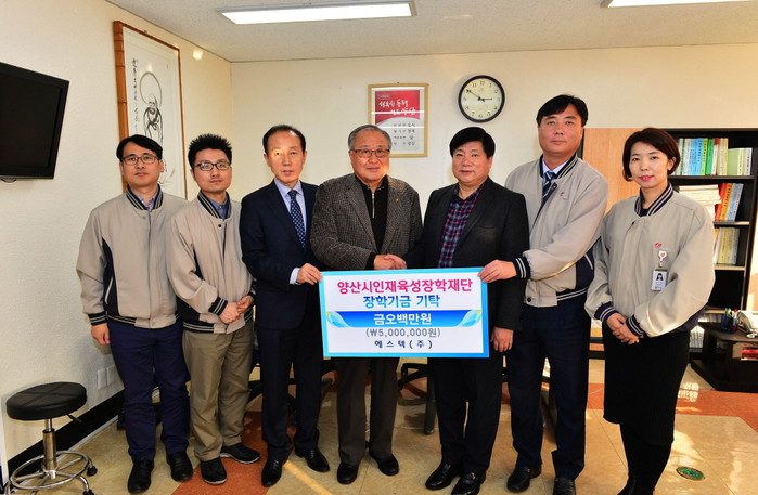 또한 양산시건설기계협의회는 2013년도부터 매년 장학금을 기탁(2013년 2백만원, 2014년~2016년 매년 3백만원)해 오고 있어 지역 사랑의 훈훈한 귀감이 되고 있다.