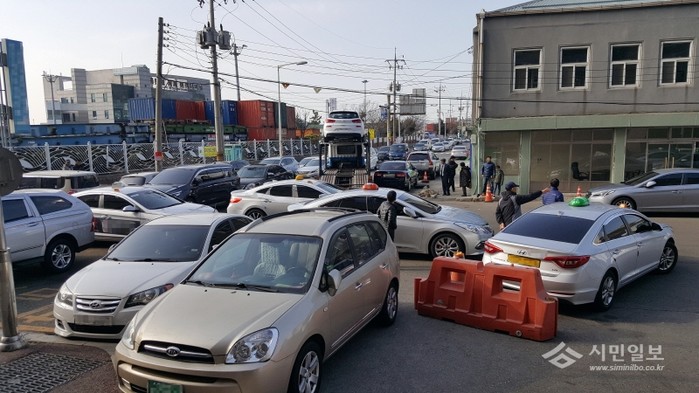 전남 목포여객선터미널 출입구 도로가 여객선 출·입항 시간대 불법 주정차 택시와 승용차량 차량으로 뒤엉켜 도로 대형주차장을 방불케 하고 있어 무인카메라 설치 등 단속대책이 절실히 요구되고 있는 실정이다. 사진=목포 황승순 기자