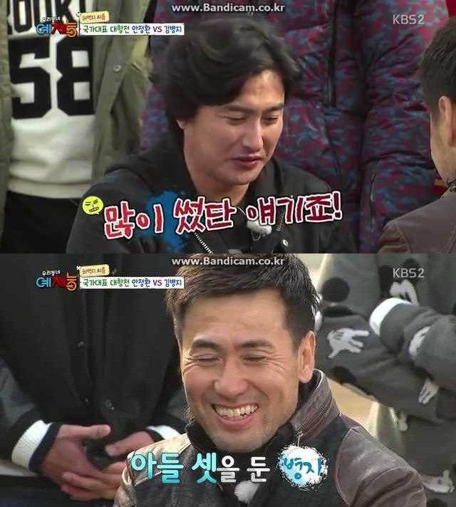 MC 강호동은 "이 방송을 아내분이 지켜보고 있다"며 "아드님 세 분을 뒀다"고 김병지를 추켜세웠다. 이어 안정환에게 "아들이 세 명이라는건 어떤 뜻이냐"고 물었다.