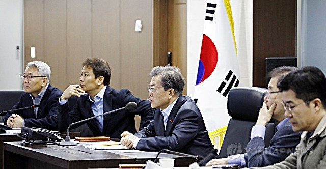 문재인 대통령이 3일 오전 위기관리실에서 영흥도 앞바다 낚싯배 침몰과 관련해 보고받고 긴급대응을 지시하고 있다.