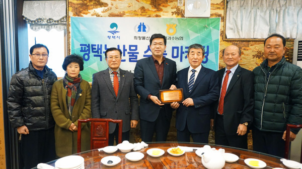경기 평택시는 지난 4일 평택과수농협 및 경기남부수협 관계자 등과 함께 부산항 인근 국내 최대 수출업체인 희창물산을 찾아 평택배 수출마케팅을 진행했다. 사진은 공재광 시장 및 관계자들이 기념촬영을 하는 모습. (사진제공=평택시청)