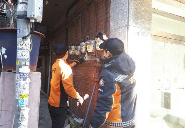 서울 영등포소방서는 오는 31일까지 지역내 재난 취약계층인 홀몸 중증장애인을 대상으로 밀착 소방서비스를 제공한다. 사진은 소방관들이 밀착 소방서비스의 일환으로 지역내 홀몸 중증장애인가구를 방문, 가스전을 점검하는 모습.(사진제공=영등포소방서)