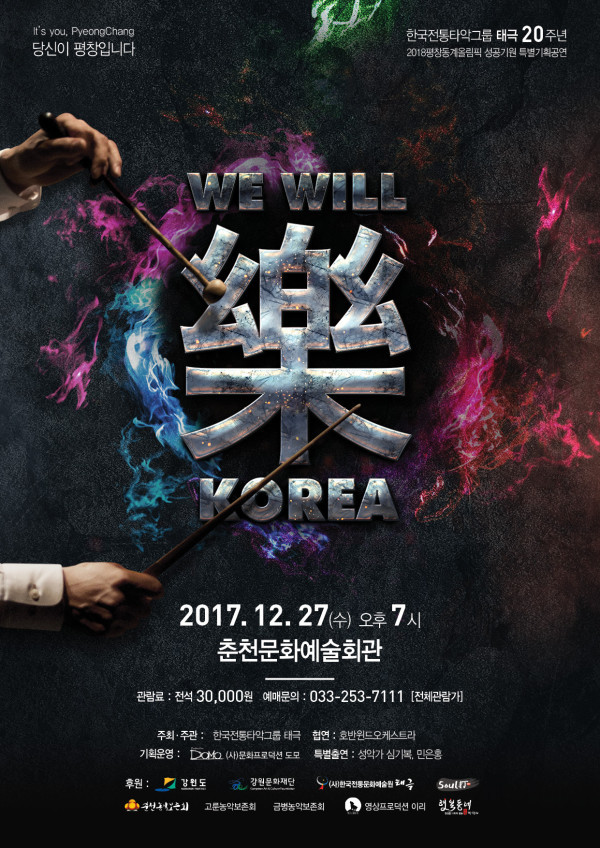 <We Will 樂 KOREA>는 기존에 선보인 적 없는 새로운 창작곡으로 구성됐다. 태극과 작곡가 최영림이 3년 전부터 공들여 작업한 이 곡들은 장단 중심의 우리 음악과 선율 중심의 서양 음악의 만남으로 한국전통타악그룹 태극과 호반윈드오케스트라를 통해 관객에게 처음으로 공개될 예정이다.