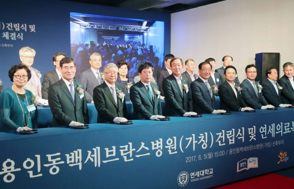 | ▲ 지난 6월 열린 용인동백세브란스병원 건립식 및 연세의료복합단지 MOU 체결식 모습. | ||