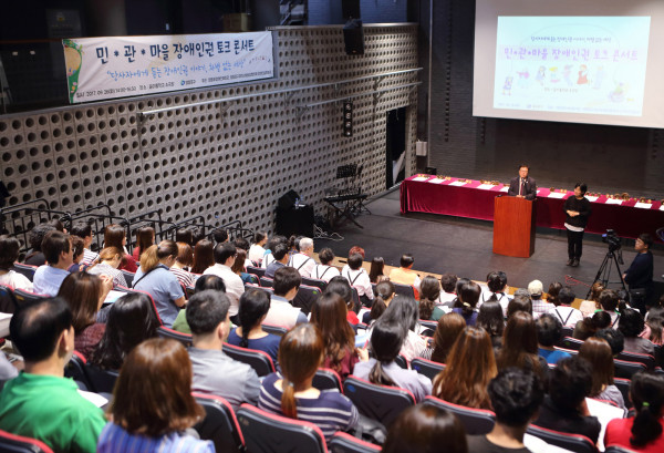 구는 지난 9월26일 장애인권보호에 앞장서야 할 공무원과 사회복지시설 종사자, 마을단체 관계자, 지역주민이 참여한 가운데 꿈이룸학교 소극장에서 ‘장애인권 토크콘서트’를 개최했다.