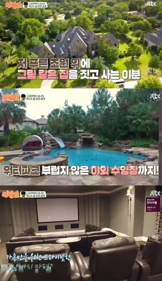 추신수는 지난 2일 방송된 JTBC 예능 ‘용감한 타향살이 이방인’에서 추신수는 야외 수영장, 개인전용 극장, 체력 단련실까지 있는 미국의 초호화 대저택을 공개했다.