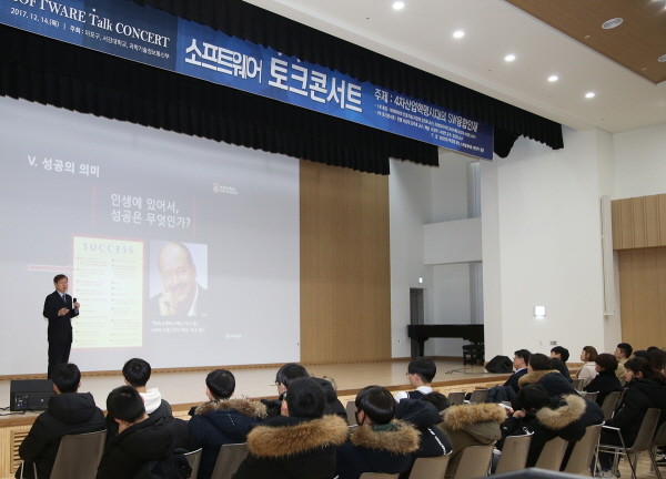 마포구는 서강대와 함께 지난 14일 마포중앙도서관 6층 마중홀에서 지역내 학생들의 역량강화를 위해 '소프트웨어 토크콘서트'를 개최했다. 사진은 학생들이 전문가에게 미래일자리와 교육개혁에 대한 특강을 듣고 있는 모습.(사진제공=마포구청)