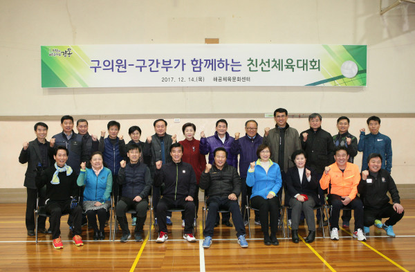15일 구의회에 따르면 이번 체육대회는 구의회와 구집행부가 올 한 해 동안 지역발전과 구민의 복리증진을 위해 힘껏 달려온 노력에 대해 서로 격려하고, 상호 신뢰를 구축해 2018년에도 구민의 뜻을 받들어 구정을 잘 이끌어가기 위해 실시된 것으로, 구의원과 각 국·소장 등 40여명이 참가했다.
