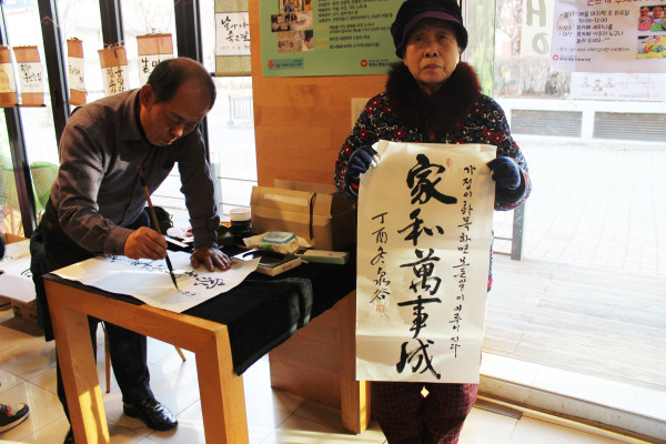 이번 서예체험활동 '우리동네 명필을 찾아라!'는 지역내 문화수준 향상과 주민과의 교류체계 마련하여 사회적 지지를 제공하기 위해 진행하였다. 참여 노인이 올해 서예교실을 통해 배운 작품을 전시하고, 지역주민들에게 알려주면서 성취감을 얻었다.