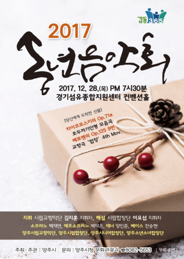 경기 양주시는 오는 28일 경기섬유종합지원센터 컨벤션홀에서 양주시립교향악단, 양주시립합창단과 ‘2017 송년음악회’를 개최한다.