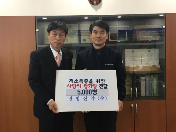 '경방신약'은 최근 저소득 주민에게 전달해달라며 쌍화탕 500상자(한 상자 10포)를 인천 연수구 푸드뱅크에 기탁했다. 사진은 관계자들이 기념촬영을 하고 있는 모습. (사진제공=연수구청)
