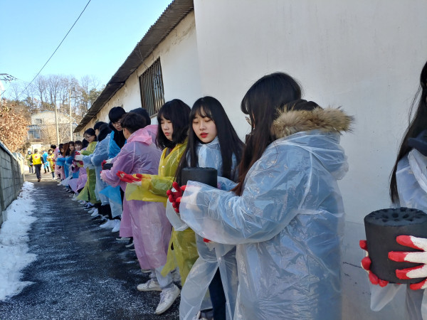경기 양주시 회천1동 적십자봉사회는 지난 16일 지역내 어려운 이웃을 위한 '사랑의 연탄 나눔 봉사'를 실시했다. 사진은 참여자들이 연탄을 나르고 있는 모습. (사진제공=양주시청)