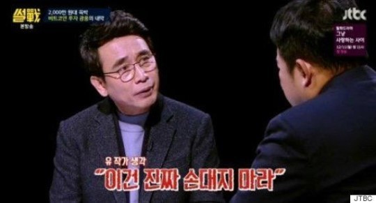 당시 방송에서 유시민은 "튤립 값이 올라서 네덜란드 사람들이 튤립을 사들이기 시작했다. 결국 튤립 한 송이 가격이 한 달 만에 50배 폭등했다"라며 "모든 사람이 이게 영원히 지속될 수 없다고 느낀 순간 값이 폭락했다"고 말했다. 이어 그는 비트코인에 대해 “사회적, 생산적 기능이 하나도 없는 화폐”라며 “채굴이 끝나면 다른 이름을 가진 비트코인 같은 것을 또 누군가가 만들 것이다. ‘바다이야기’처럼 도박과 같다”고 말했다.