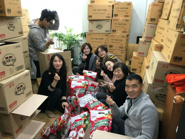경기 안산시 사이동 주민연합회는 연말 크리스마스를 맞아 지난 19일 '주민이 산타되는 향기나눔' 행사를 실시했다. 사진은 참여자들이 선물을 준비하면서 기념촬영을 하는 모습. (사진제공=안산시청)