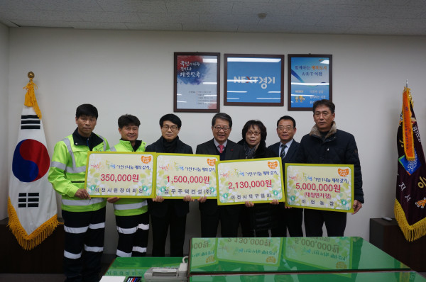 (주)삼우주택건설은 21일 경기 이천시에 겨울철 저소득 취약계층을 위한 ‘행복한 동행 성금’으로 기탁했다. 사진은 기탁식에 참석한 시청과 삼우주택건설 관계자들이 성금 기탁 후 기념촬영을 하는 모습.(사진제공=이천시청)
