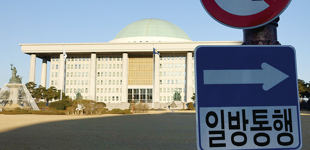 여야가 국회 개헌특위 연장 문제와 관련해 협상력을 발휘하지 못한 채 끝까지 대립하면서 지난 11일 문을 연 12월 임시국회는 25일 현재까지 법안을 한 건도 처리하지 못했다. 사진은 국회 정문에서 국회의사당을 바라본 모습.