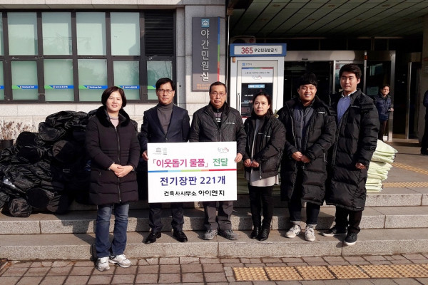 경기 부천시는 지난 22일 원미동 소재 건축사사무소 아이엔지와 이웃돕기물품 전달식을 가졌다. 이날 전달된 물품은 770만원 상당의 전기장판 171개로, 어려운 이웃이 겨울을 따뜻하게 보낼 수 있도록 마련했다. 사진은 관계자들이 기념촬영을 하는 모습. (사진제공=부천시청)