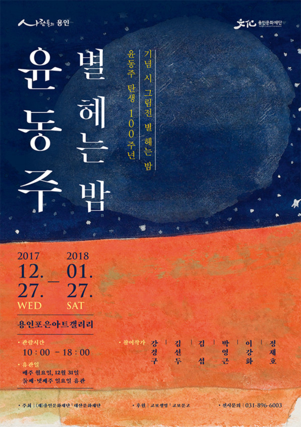 ‘별 헤는 밤’전은 무료로 진행되며, 시민 누구나 관람할 수 있다. 자세한 내용은 용인문화재단 홈페이지 또는 전화로 문의하면 된다.