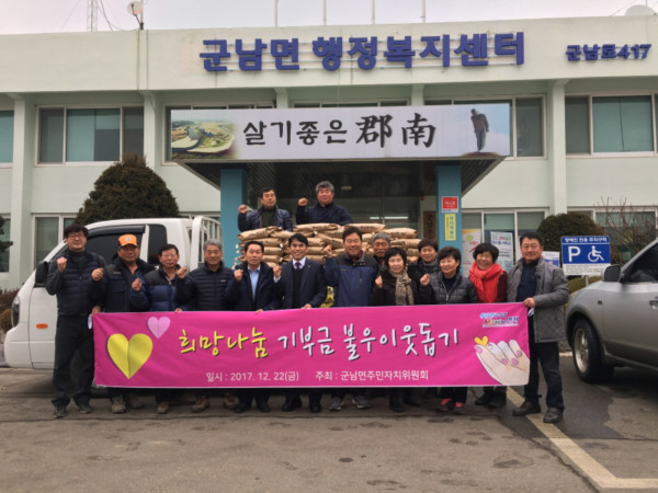 최근 경기 연천군 군남면 주민자치위원회는 ‘제6회 희망나눔 연강 별빛음악회’ 행사에서 얻은 수익으로 지역내 저소득 취약계층 36명을 위한 쌀을 구매해 면사무소에 기탁했다. 사진은 쌀 기탁식 후 관계자들이 기념촬영을 하는 모습. (사진제공=연천군청)