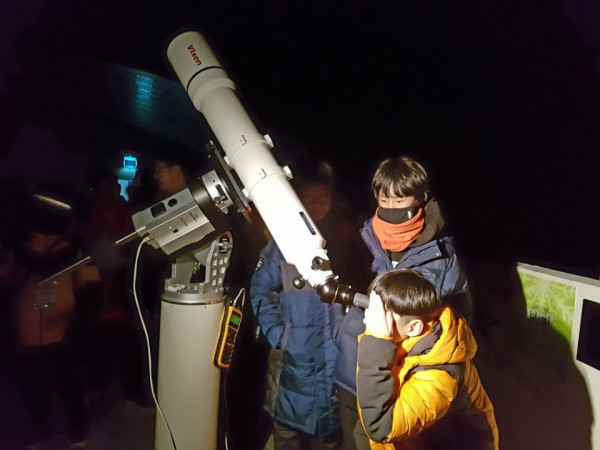 경북 구미교육지원청은 교육복지우선지원사업 일환으로 최근 무주 반디랜드에서 옥계초등학교 6학년 학생 30명을 대상으로 ‘꿈과 희망을 찾아 떠나는 드림캠프’를 운영했다. 사진은 학생들이 천체망원경을 이용해 별자리를 관측하는 모습. (사진제공=구미교육지원청)