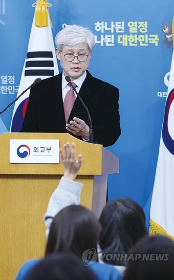 외교부 장관 직속 '한일 일본군위안부 피해자 문제 합의 검토 태스크포스(TF)' 오태규 위원장이 27일 오후 정부서울청사에서 한·일 일본군 위안부 피해자 문제 합의 검토 결과를 발표하고 있다.