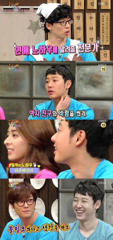 이날 방송에서 MC 유재석은 김동욱에게 "여자 친구랑 오래 있고 싶으면 방을 잡는다는 소리를 들었다"라고 질문을 던졌다.