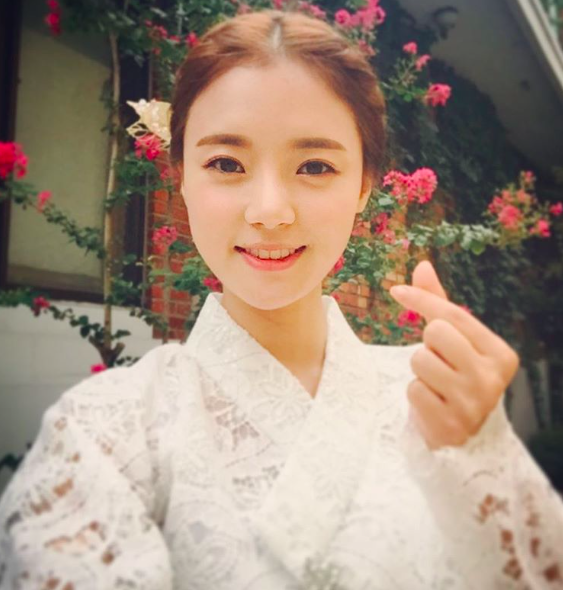 사진 속에서 고보결은 새하얀 레이스 한복을 입고 '손하트'를 건네며 미소를 짓고 있다. 한복 못지않게 뽀얀 피부와 미모가 인상적이다.
