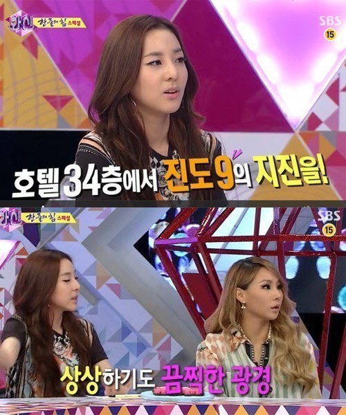 산다라박은 과거 방송된 SBS 예능프로그램에 출연해 데뷔 무대를 위해 찾았던 일본에서 대지진을 겪었던 경험담을 공개했다.