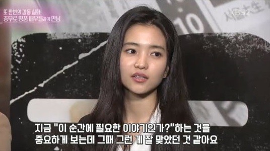 김태리는 "제가 이 영화 시나리오를 읽어본 건 촛불 평화시위가 한창 광장에서 벌어질 때였다"면서 "저는 영화를 고를 때, '지금 이 순간에 필요한 이야기인가?'라는 것을 중요하게 본다. 그때 그런 게 잘 맞았던 것 같다"고 강조하며 영화 '1987'을 선택한 이유를 밝혔다.