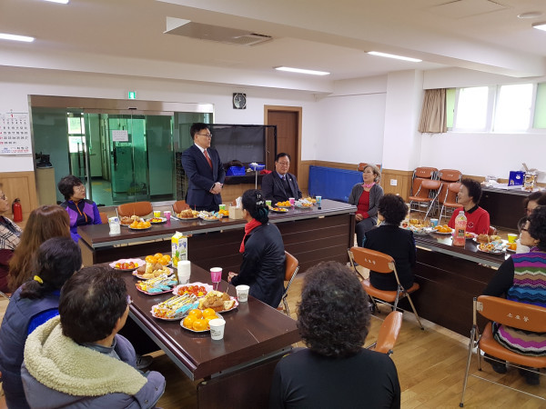 경기 동두천시 소요동 주민자치센터에서는 지난 4일 주민자치 프로그램 '실버댄스교실' 수강생들과 신년 다과회를 가졌다. 사진은 소요동장이 수강생들에게 인사말을 하고 있는 모습. (사진제공=동두천시청)