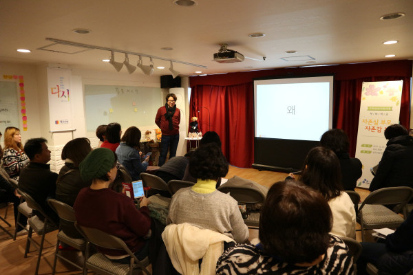 최근 서울 마포교육복지센터는 심리극장 청자다방에서 지역내 거주하는 학부모들을 대상으로 건강한 가족 성장 지원을 위한 부모학교를 운영했다. 사진은 학부모들이 강의를 듣고 있는 모습. (사진제공=마포교육복지센터)