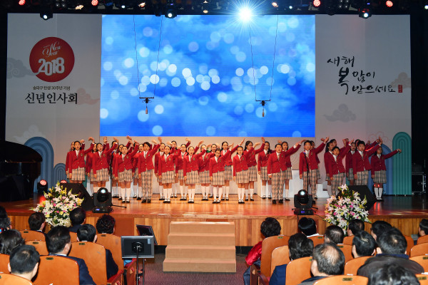 지난 5일 서울 송파구가 송파구민회관에서 개청 30주년을 기념해 ‘상생과 화합으로 꿈과 희망을 노래하다’라는 주제로, 구민 1000여명과 함께 무술년 새해의 희망찬 출발을 다짐하는 ‘신년인사회’를 개최했다. 사진은 신년인사회에서 구립 소년소녀합창단의 축가 공연 모습. (사진제공=송파구청)