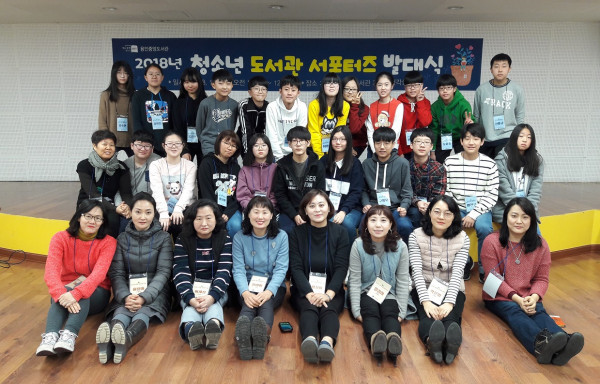 경기 용인시는 지난 6일 역북동 어린이도서관 시청각실에서 중앙도서관 자원봉사자로 활동할 ‘청소년 도서관 서포터즈’의 발대식을 개최하고, 총 31명의 청소년을 서포터즈로 임명했다. 사진은 발대식 후 임명된 서포터즈들이 기념촬영을 하는 모습. (사진제공=용인시청)