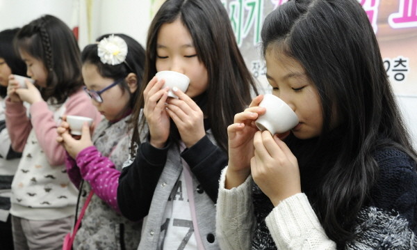 | ▲ 지난해 자치회관 프로그램에서 학생들이 다도 체험을 하고 있다. | ||