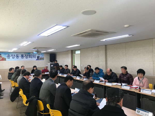 경기 여주시 중앙동은 9일 중앙동행정복지센터 회의실에서 24개 마을 통장과 기관·단체장이 참석한 가운데 ‘제1차 통장회의’를 개최했다. 사진은 통장회의에 참석한 각 통장들이 지역현안에 대해 논의하고 있는 모습. (사진제공=여주시청)