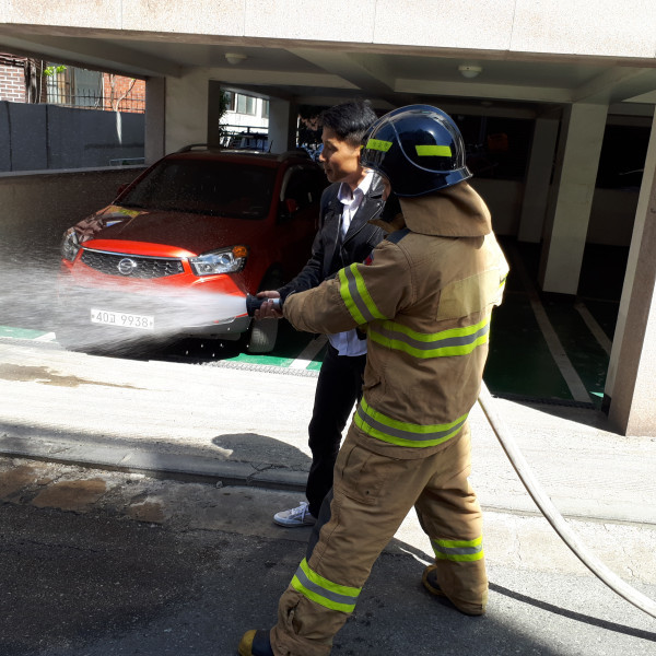 동작소방서는 겨울철을 맞아 오는 19일까지 지역내 비상소화장치 196곳에 대해 일제점검을 실시한다. 사진은 소방관과 시민이 함께 소방호스 작동점검을 진행하는 모습. (사진제공=동작소방서)