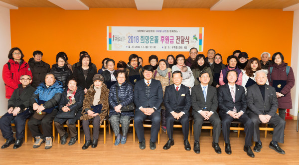 서울 은평구 구파발교회는 지난 7일 지역내 생활이 어려운 차상위계층 가구에 '희망온돌 후원금' 총 1650만원을 전달하는 행사를 열었다. 사진은 관계자들이 기념촬영을 하는 모습. (사진제공=은평구청)