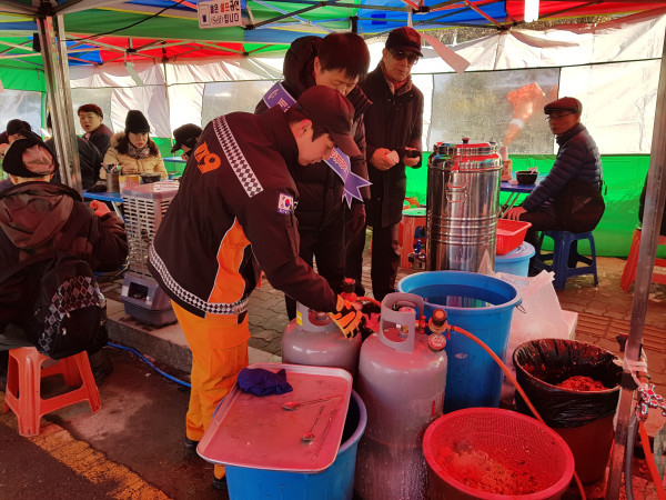 경기 양평군은 10일 용문전통시장 일원에서 겨울철 화재예방 및 안전문화 정착을 위한 캠페인을 실시했다. 사진은 관계자들이 가스통을 점검하고 있는 모습. (사진제공=양평군청)